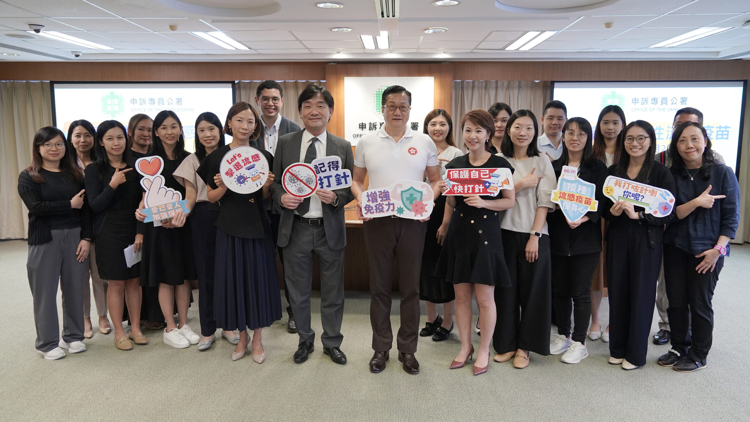 隨着流感季節來臨,為響應政府的流感疫苗接種計劃,公署特別於今日(10月20日)為員工安排流感疫苗接種服務。申訴專員陳積志身體力行,即場接種流感疫苗,活動亦獲同事積極響應,充分展現公署團隊對守護公共健康和預防流感的重視。