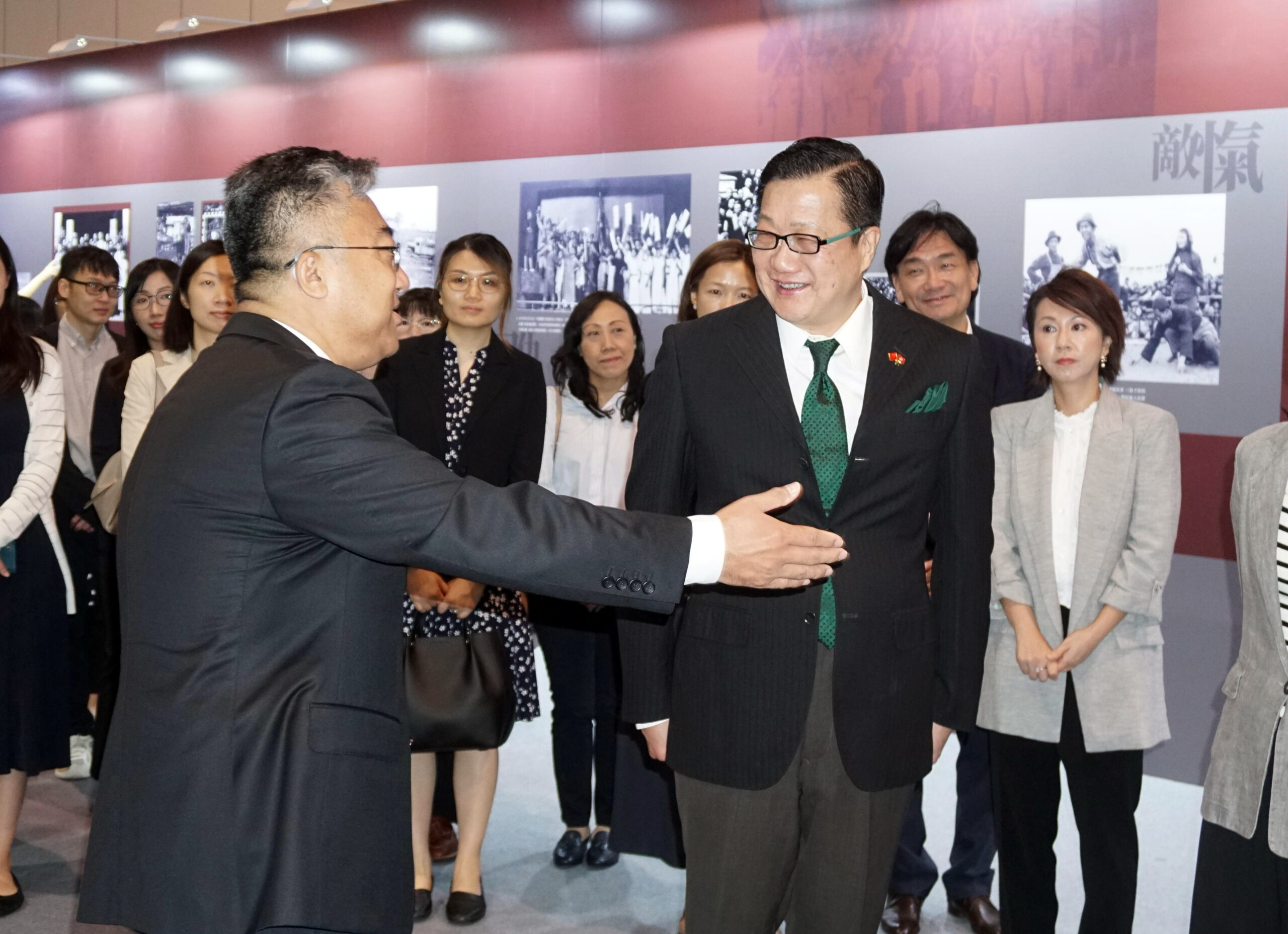 陳積志感謝大公文匯傳媒集團副董事長、總經理鄭勇男到場接見,並表示展覽以豐富史料及珍貴展品,生動呈現祖國抗戰的偉大歷程及中華民族的團結意志,意義深遠。在專業導賞員講解下,公署人員更深入和全面地了解抗日歷史和抗戰勝利對我們民族的重大意義,增強人員的國家意識和愛國精神,更積極地凝聚力量為建設香港特區作更大的努力和作出貢獻。